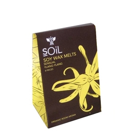 | Let the sensual properties of Ylang Ylang create the perfect mood for intimacy. Pure soy wax melts are healthier for you and the environment and so easy to use too! Using the gorgeous aromas of pure essential oils in your home is so easy with SOiL soy wax melts. Just pop a SOiL soy wax melt into a lit burner and thats it! Sit back and enjoy the aroma. Simply wipe away this all natural wax if spilt or the burner for next use. Package/Quantity Description: 8 pieces. |